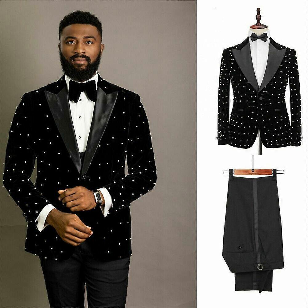 Pearl Wedding Suits Black Velvet Peak Lapel Blazer for Men Formal Party Tuxedos