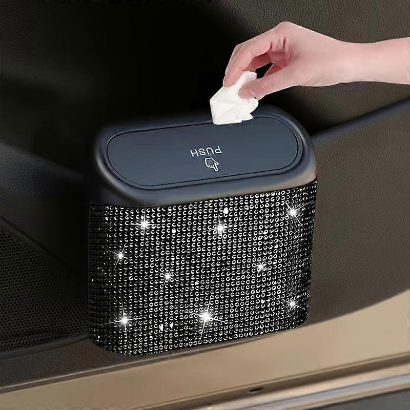 Artificial Rhinestone Decor Car Trash Can, Car Interior Hanging Storage Bin with Automatic Lid, Multifunctional Car Accessories