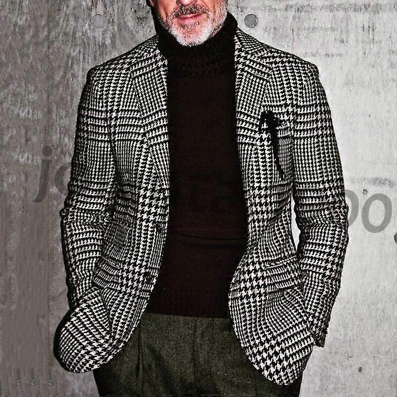 Black and White Houndstooth Men Jacket Notch Lapel Blazer Single-Breasted Coats