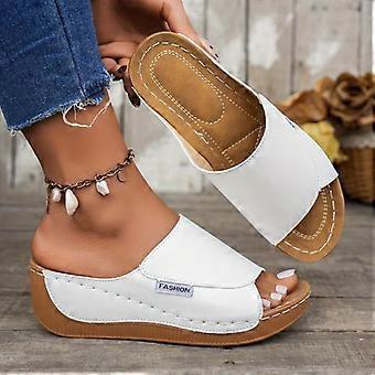 Women's Comfortable Arch Support Slide Sandals - Breathable, Stylish, Soft Sole, Mid-Heel, Open Toe With Faux Cover Straps - For Casual Atti