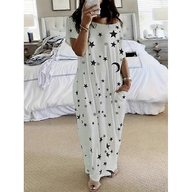 Women's Butterfly / Star Print Pocket Round Neck Nightdress, Casual Soft Comfortable Short Sleeve Nightgown for All Seasons, Lady's Sleepwea