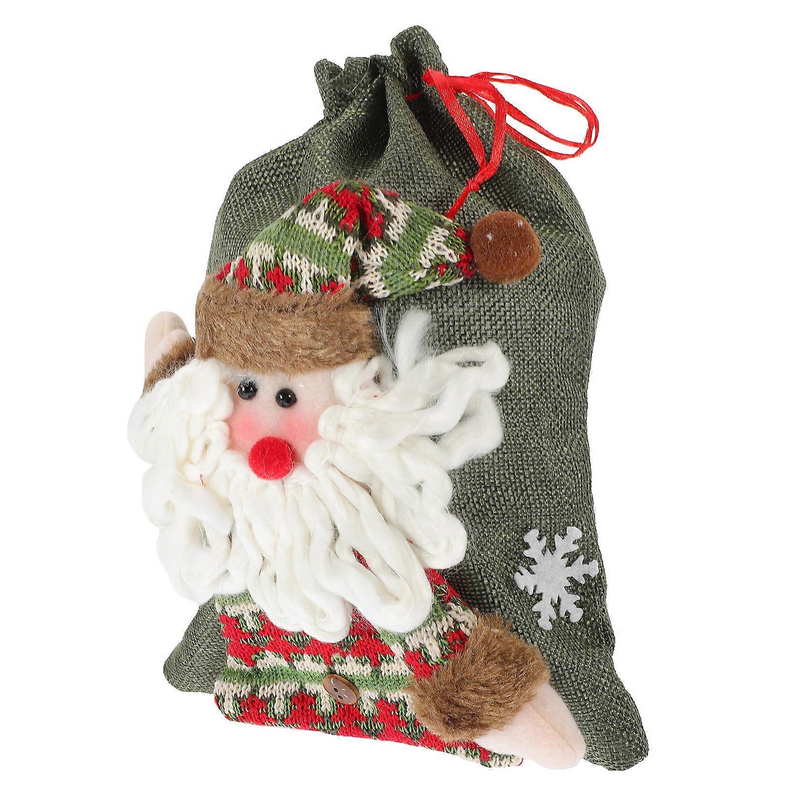 Santa Claus Patterned Pouch for Gift Wrapping 2Pcs Olive Green
