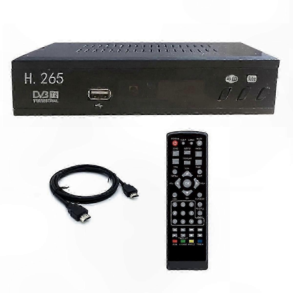 [DVBT2 RECEIVER] The 265 HD television decoder allows you to play high definition channels using the DVBT and DVBT2 standards to watch free-to-air television content with the best quality. [Convenient and multifunctional in one] With USB port, you can play multimedia content (photos, videos, music). The function allows you to record TV programs to a USB hard drive and play them on a TV or computer (USB memory recording function is not recommended). [Exclusive design] This decoder supports text/subtitles/multilanguage, powerful and efficient EPG function, sleep timer and 3D interface support. Receiver Standard: 265 DVB-T2/T (EN_302755 V1.3.1/EN 300744) Input RF Frequency: 48-866 MHz Bandwidth: 6 MHz, 7 MHz, 8 MHz Constellation: QPSK, 16-QAM, 64-QAM, 256-QAM FEC: 1/2, 3/5, 2/3, 3/4, 4/5, 5/6 Guard Interval: 1/128, 1/32, 1/16, 19/256, 1/8, 19/128, 1/4 Support: Support Single and multiple PLPs Input level: -83 to -5 dBm Fully complies with DVB-T/T2 and 265, 264, MPEG-4, MPEG-2 Standard The maximum speed of the traffic flow of at least 50 Mbit/sec Support 3D interface Sleep Timer Support teletext/subtitle/multilanguage Powerful and highly effective 7-day EPG function AUTO, 16:9 Pillar Box, 16:9 Pan G Scan, 4:3 Letter Box, 4:3 Pan G Scan, 4:3 Full, 16:9 Wide Screen USB 2.0 for TIMESHIFT, software upgrade and media files playback Video output resolution: 480i/576i/480p/576p/720p/1080i/1080P Note: Due to different production batches, the appearance may vary, which does not affect the use. Plug Type: EU Plug, applicable to Indonesia, Germany, France, Spain, Italy and other countries Voltage: AC 100-240 V Material: Plastic Color: Black Package Contents: 1 x Top Box 1 x HD Cable 1 x Remote Control Only the above package content is included; other products are not included Note: Light reflection and different displays may cause color variations