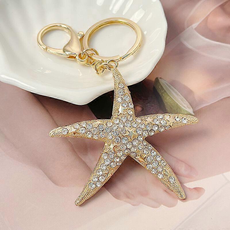 7.3cm Silver/Gold Plated Crystal Starfish Car Keychain Women's Handbag Key Chain