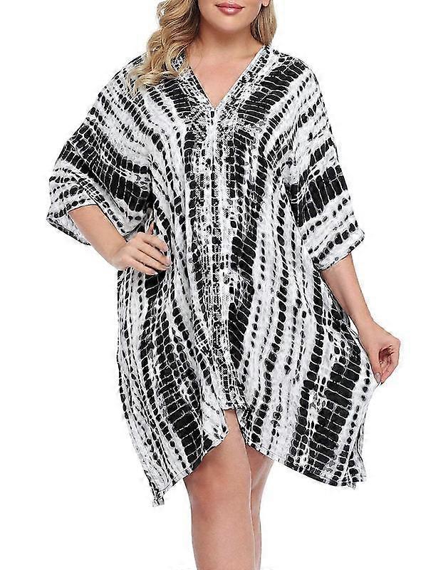 HDE Women's UPF 30+ Short Kaftan Cover Up Oversize Plus Size Swimsuit Shirt Dress Caftan Casual Beach Black Tie Dye Floral Print