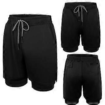Men Sports Gym Fitness Workout Running Shorts w/ Compression Lining Active Pants