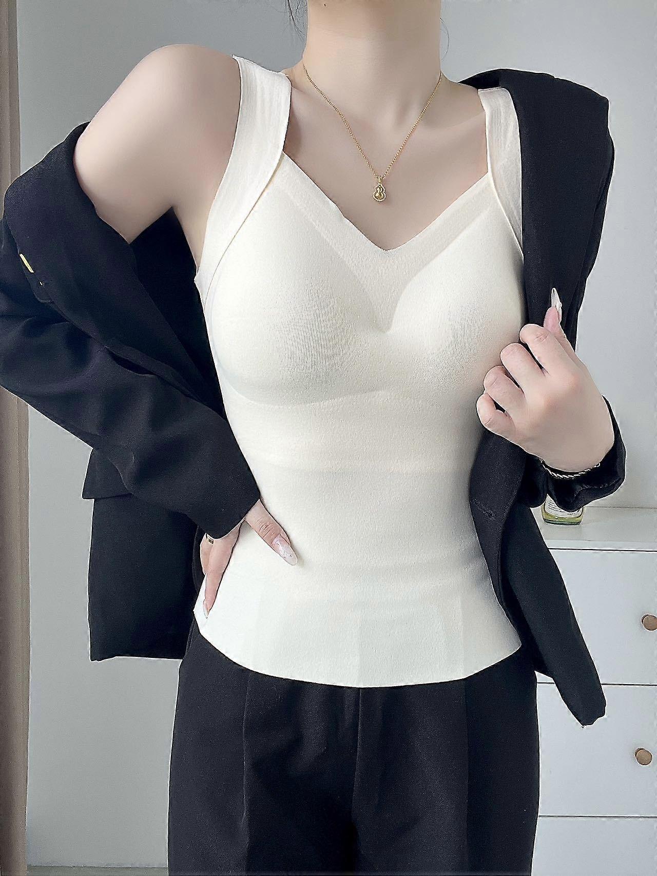 Autumn and Winter Thermal Vest with Chest Pad Underwear Slim Outer Wear Bottoming Brushed Sleeveless Top for Women