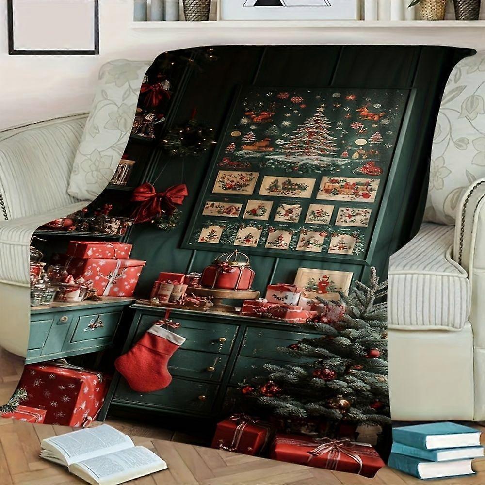 1pc Christmas-Themed Flannel Throw Blanket - Soft Polyester, All-Season Cozy Bedspread with Festive Snowflake & Candy Ca-BOLKJ338
