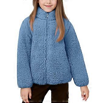 Girls' Coral Velvet Jacket Students Warm Coat Autumn and Winter Solid Color Stand-Collar Zippered Plush Coats Children's Jackets