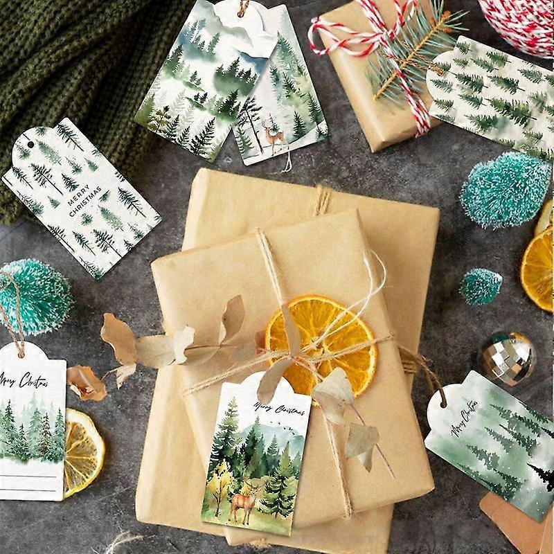 Christmas Gift Tag, 60pcs/set Tree Pattern Kraft Paper Gift Tag with 30m Rope, Gift Wrapping Decoration Supplies for Home Party Festival