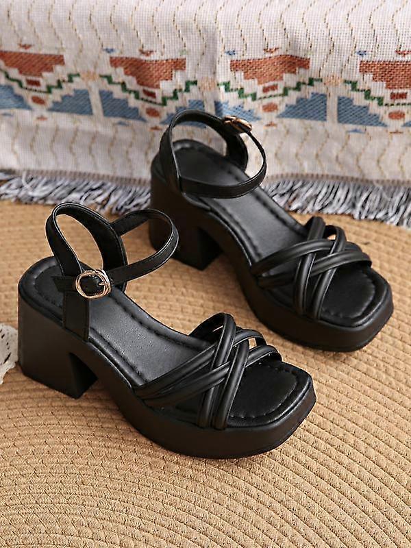Women's Fashionable Cross Strap Heeled Sandals, Casual Comfortable High Heel Sandals for Daily Wear, Trendy All-match Platform Sandals for W