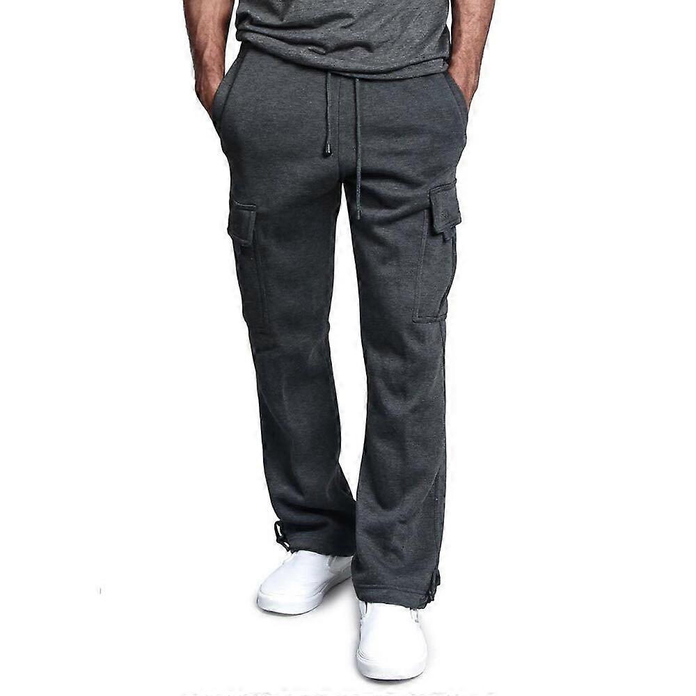 Men Drawstring Multi Pocket Sweat Pants Straight Leg Running Long Trousers Loose