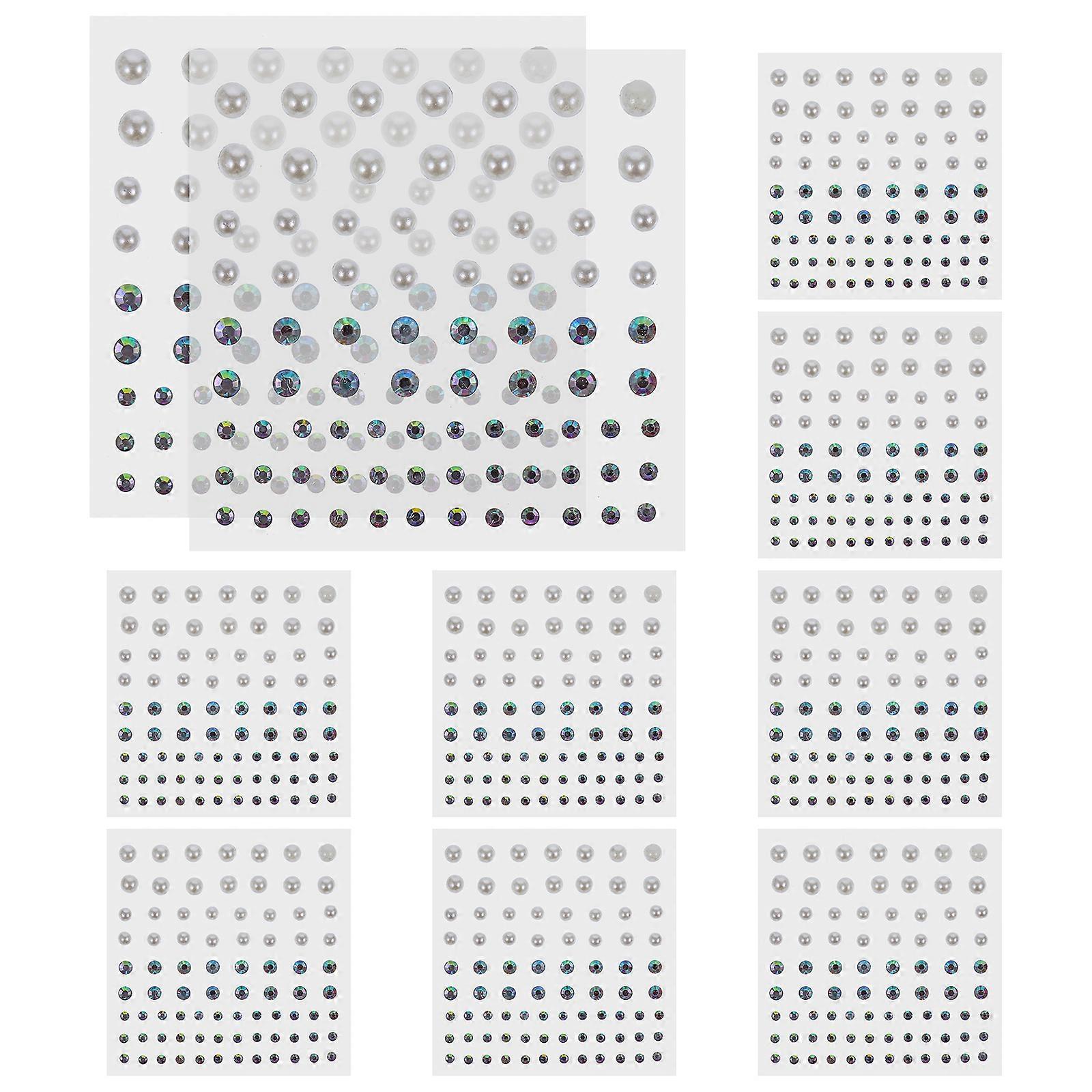 Self Adhesive Rhinestone Decor for Decor 10 Sheets Face Pearls Stickers