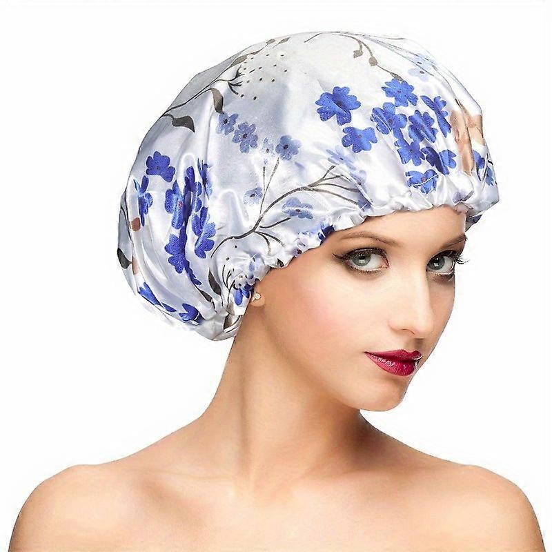 Recomable Bathroom Essentials Waterproof Shower Cap Hair Care Caps Double-layer Elegant Shampoo Cap Long