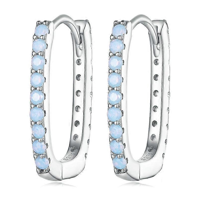 (New arrival) BSE744 Sterling Silver Simple Geometric Square White Gold Plated Opal Nanite Earrings