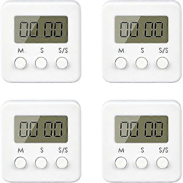 Digital Timer, 4-Pack Mini Clock with Loud Alarm, Countdown Countup to 99.59 & LCD Display Short Timer for Kitchen, Office, Sports White