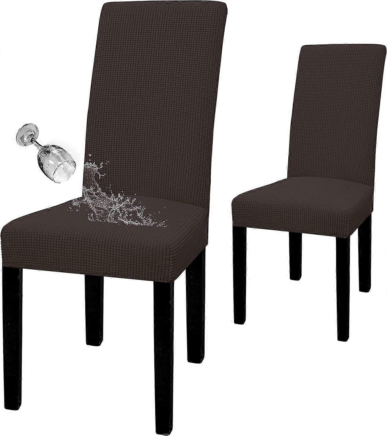 Dining Chair Cover Set of 2, Stretch Jacquard Slipcover, Removable Washable Protector for Home or Restaurant (Dark Coffee)