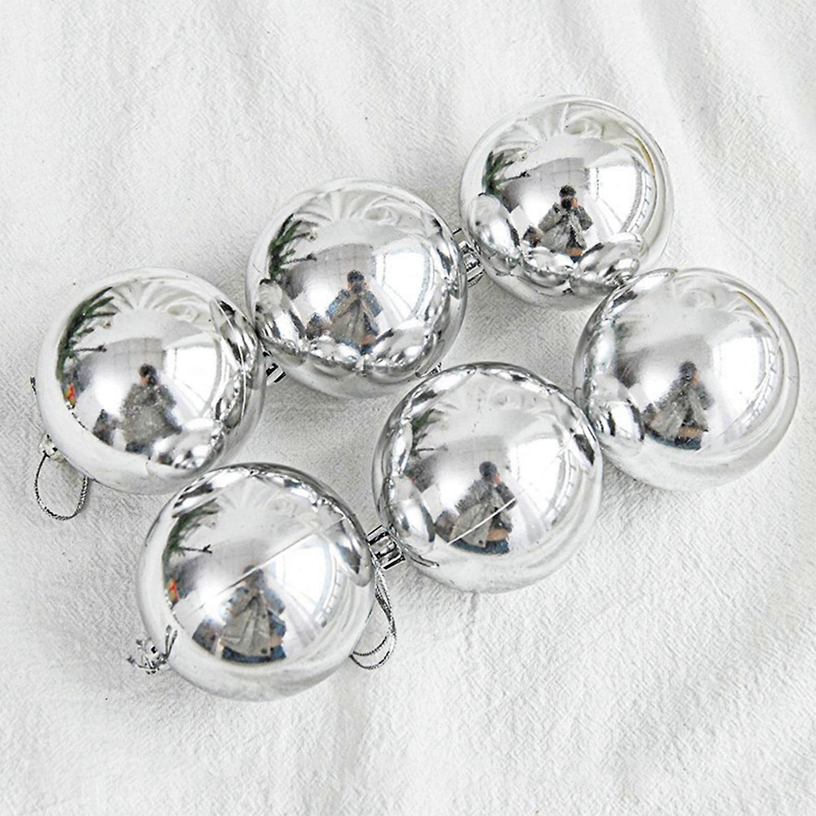 Xubond 6pcs Christmas Tree Color Ball Pendant, Silver Bright Plastic Electroplating Decor, Compatible with Wedding & Holiday Hanging Decor
