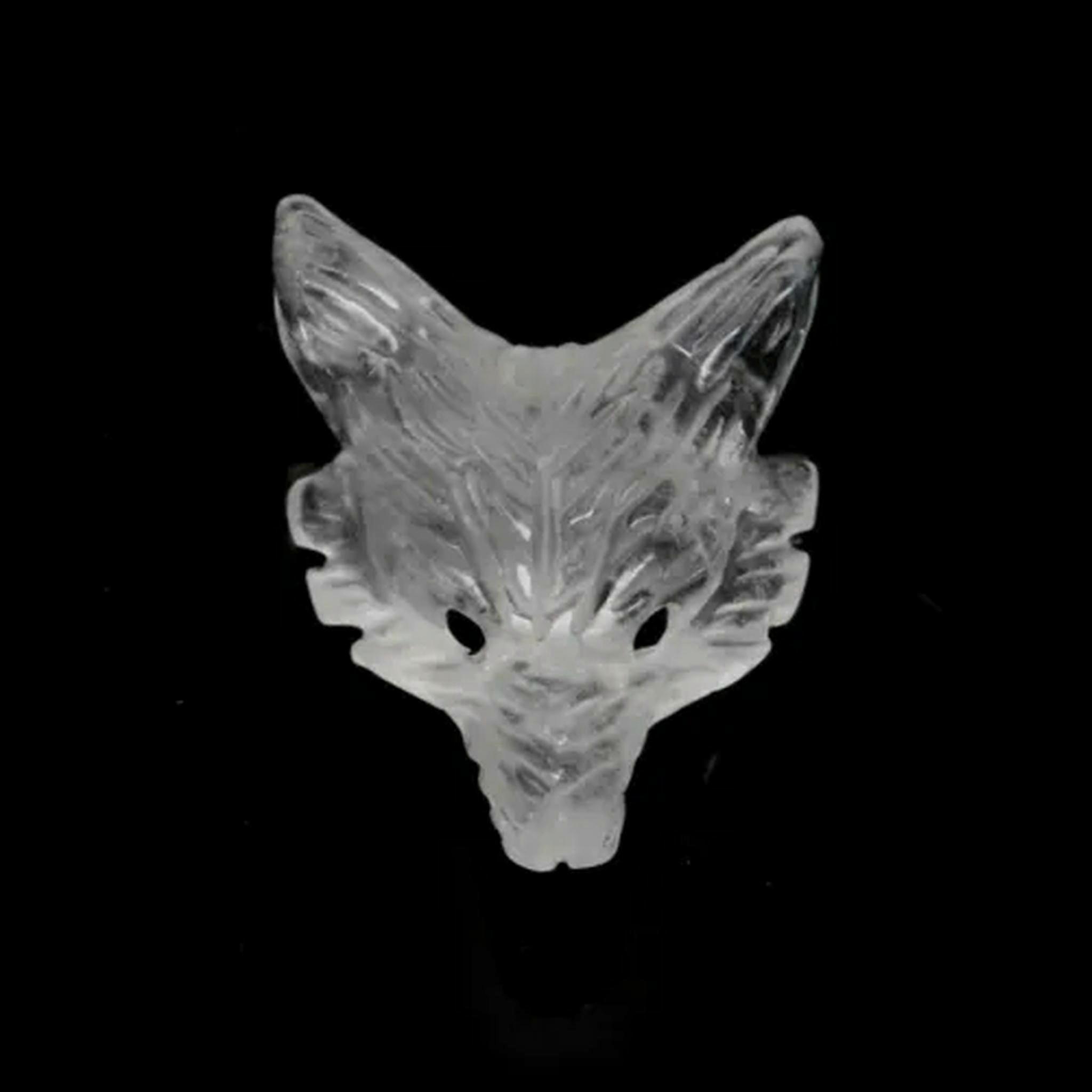 RSAMD Natural Wolf Head Pendant Crystal Healing Quartz Stone Carved DIY Necklace Decor-Clear Quartz