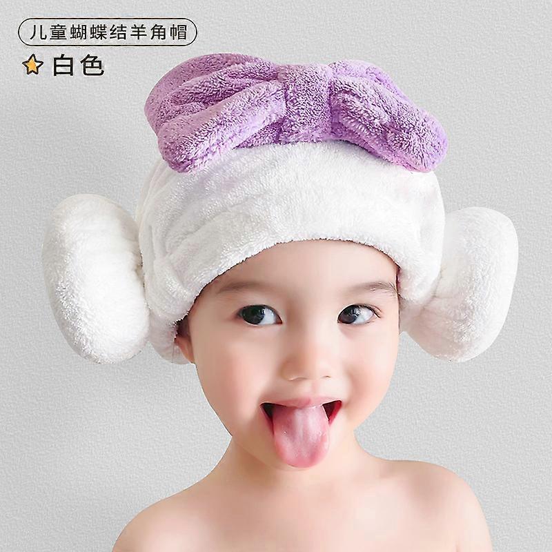 Coral Fleece Children's Bow Sheep Horn Dry Hair Cap Water Absorbent Wiping Kid Hair Wash Bath Cap Bathroom Accessories Bonnets