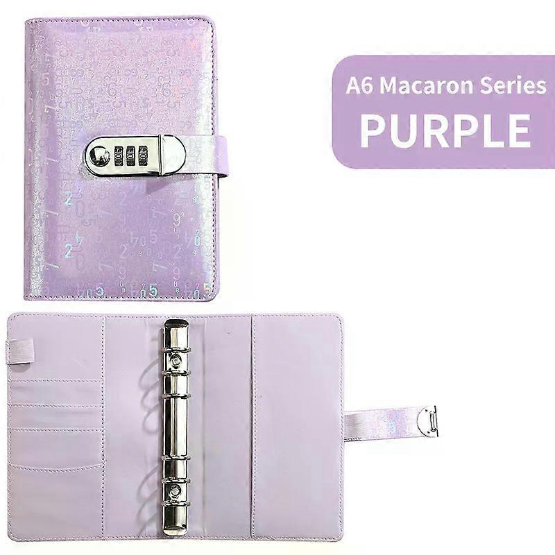 A6 Laser Coded lock PU Clip-on Notebook Leather Loose Leaf Notebook Cover Notebooks Journal Kawaii Stationery