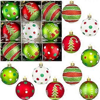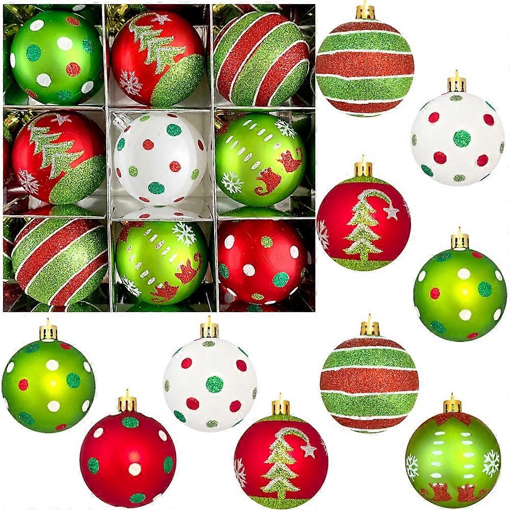 Christmas Balls Ornaments 9/12Pcs Green Painted Christmas Tree Decorations Hanging Ball for Green Xmas Party Wedding Decoration