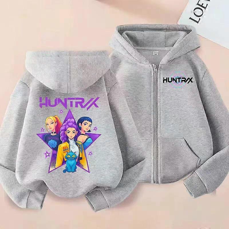 HUNTRIX Anime-style Children's Zipper Sweater, Girl Group-themed Hoodie