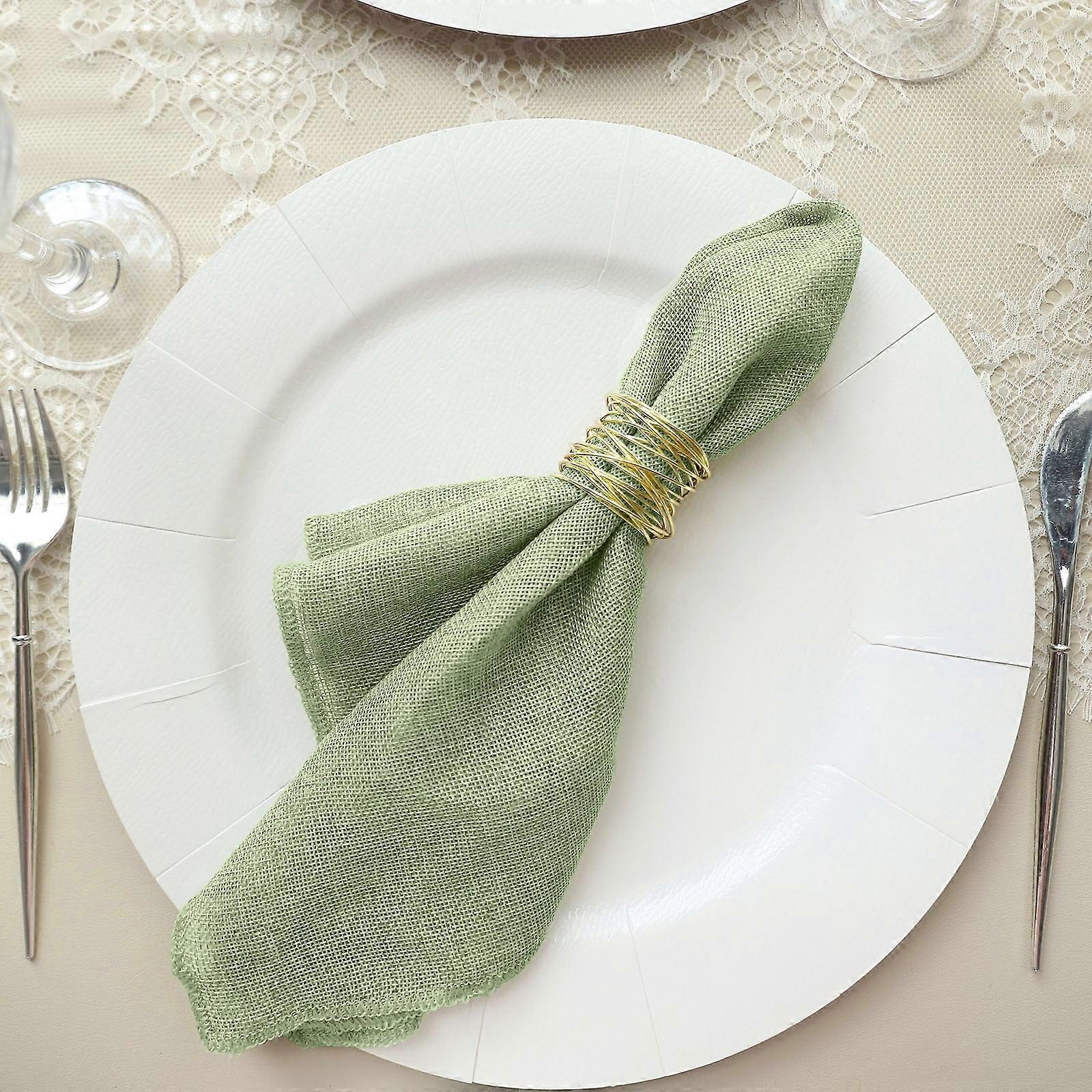 Efavormart 5 Pack | Sage Green Boho Chic Rustic Faux Jute Linen Dinner Napkins - 19"X19"