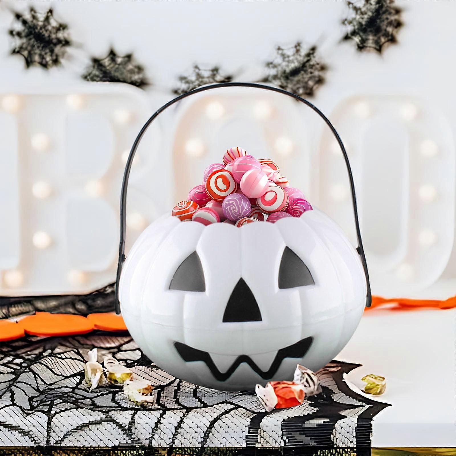 Quinlirra Clearance Pumpkin Candy Bucket, Plastic Portable Pail with Handle, Reusable Halloween Bucket for Trick or Treat, White