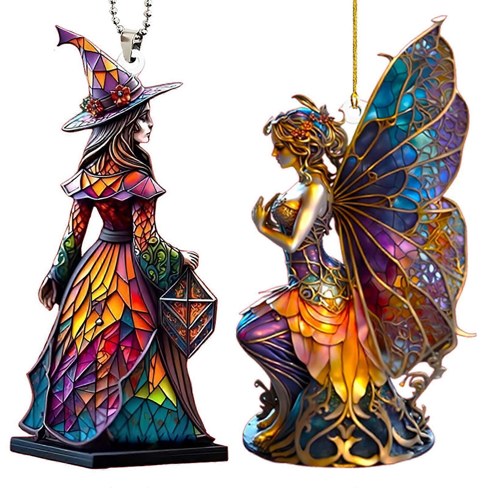 ELEVENTIME Witch Hanging Decor - Stained Glass Style Charm, Compatible with Car, Backpack, Home, Custom Gift