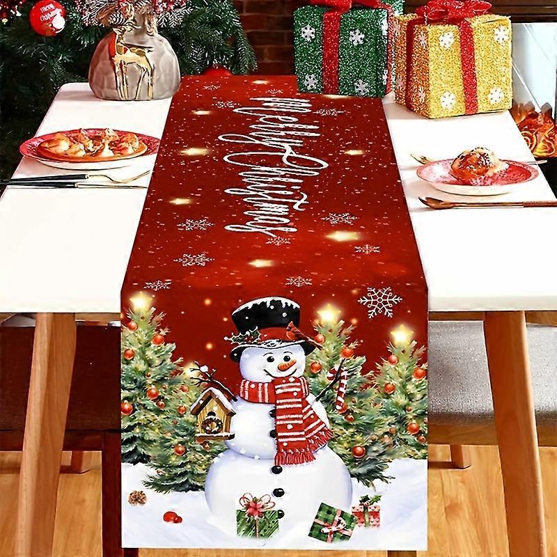 Merry Christmas Tree Snowman Linen Table Runner Dining Table Decor Reusable Winter Snowflake Table Runners Christmas Decorations