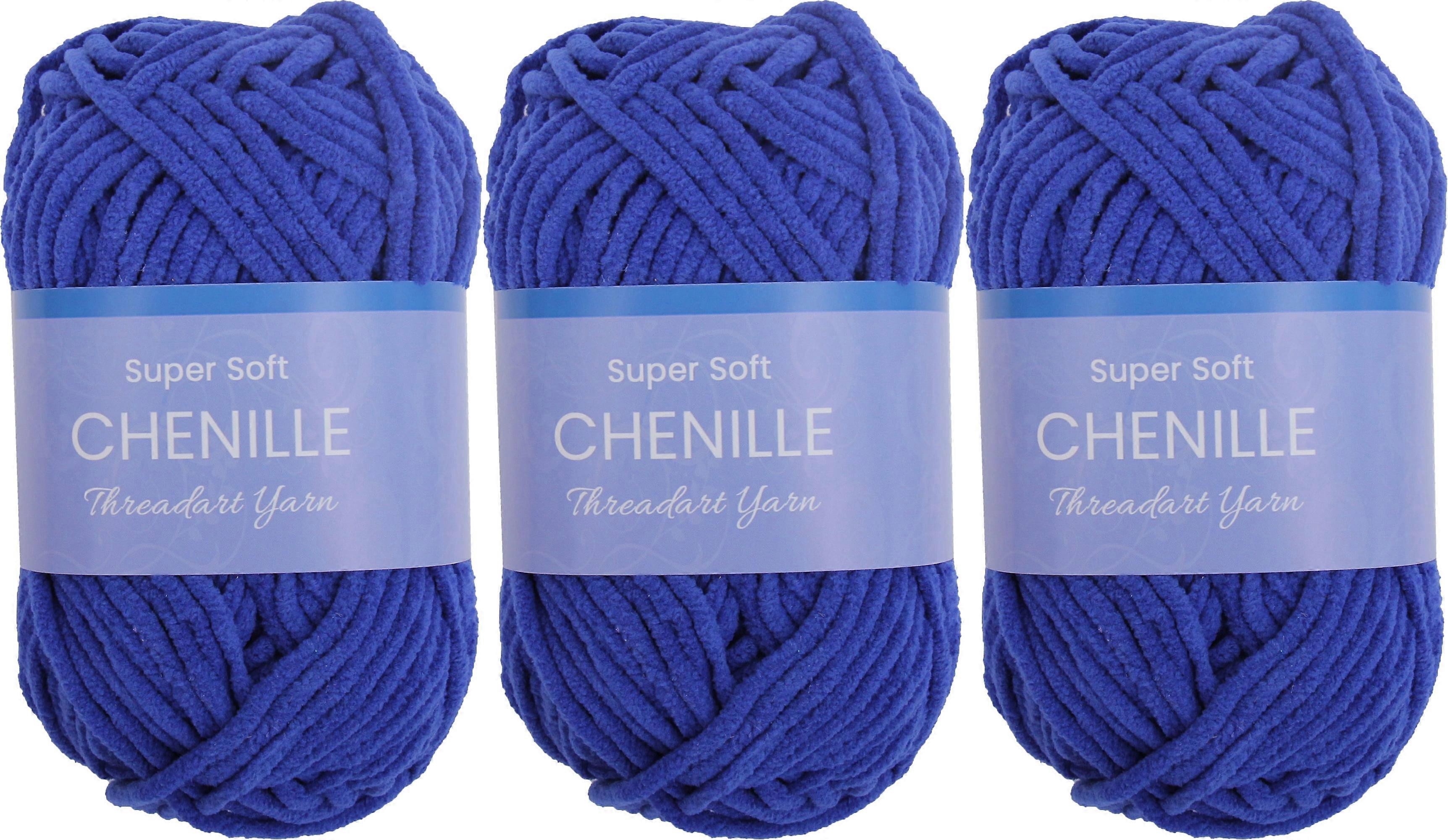 3 Pack ThreadArt Chenille Yarn for Crocheting, Knitting, Amigurumi, Super Soft Plush Velvet Yarn - 50 Gram 60 yds #5 Fluffy Yarn Skeins - Royal Blue