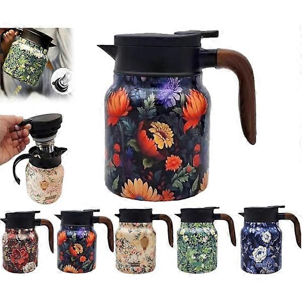 Stainless steel thermos jug, vintage floral tea thermos with strainer Orange-B 15x11.8cm