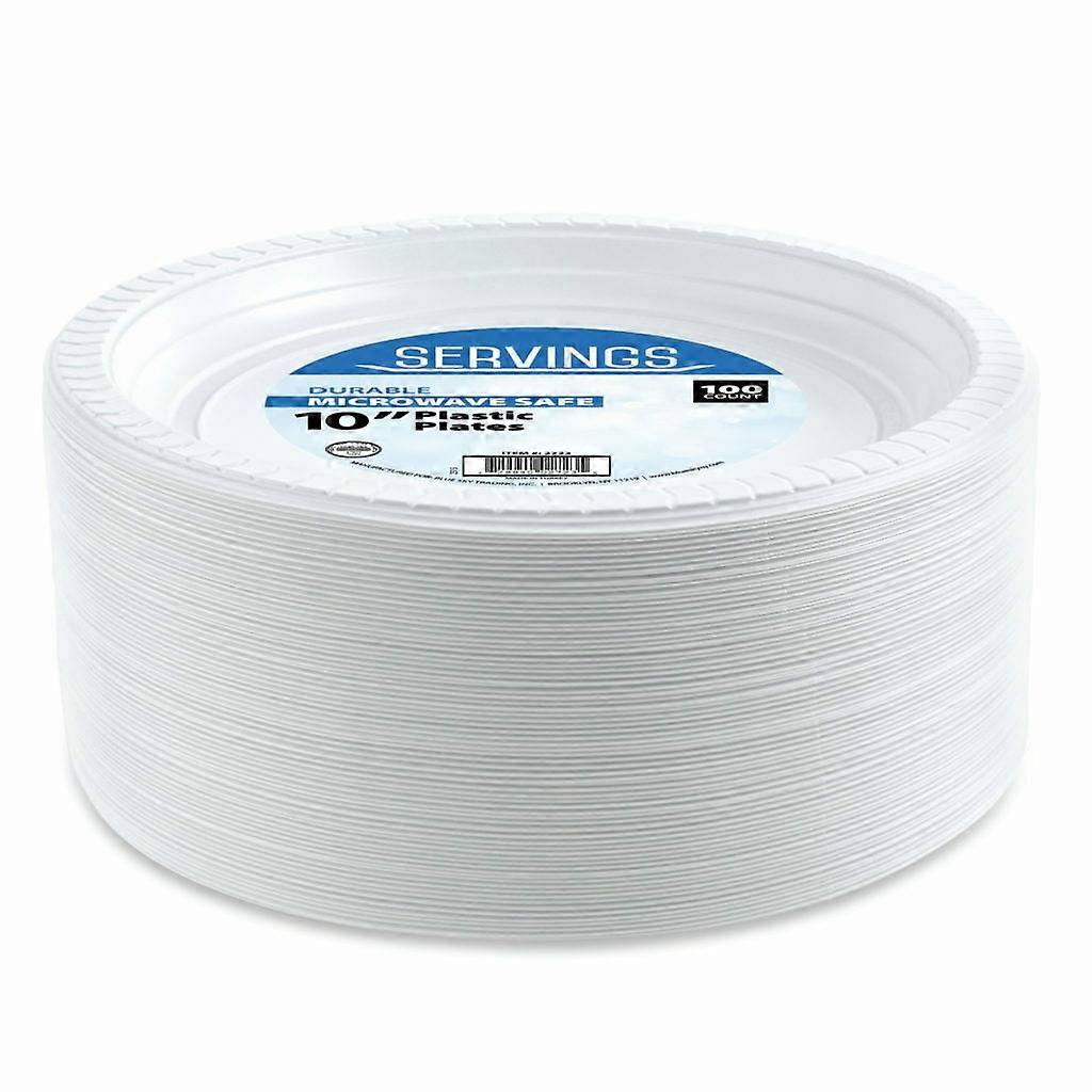 VeZee' Serving 10" Disposable Plastic Plates Durable Microwave Safe for Daily Use and Parties (500)