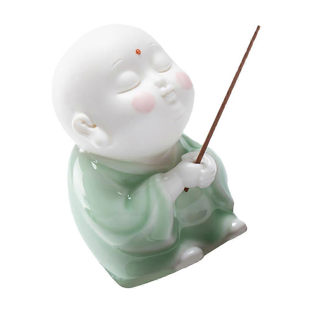 Buddhist Monk Aromatherapy Incense Burner Holder Classic Multifunctional Green Office Table 6.00X5.50X10.00cm 1Pcs
