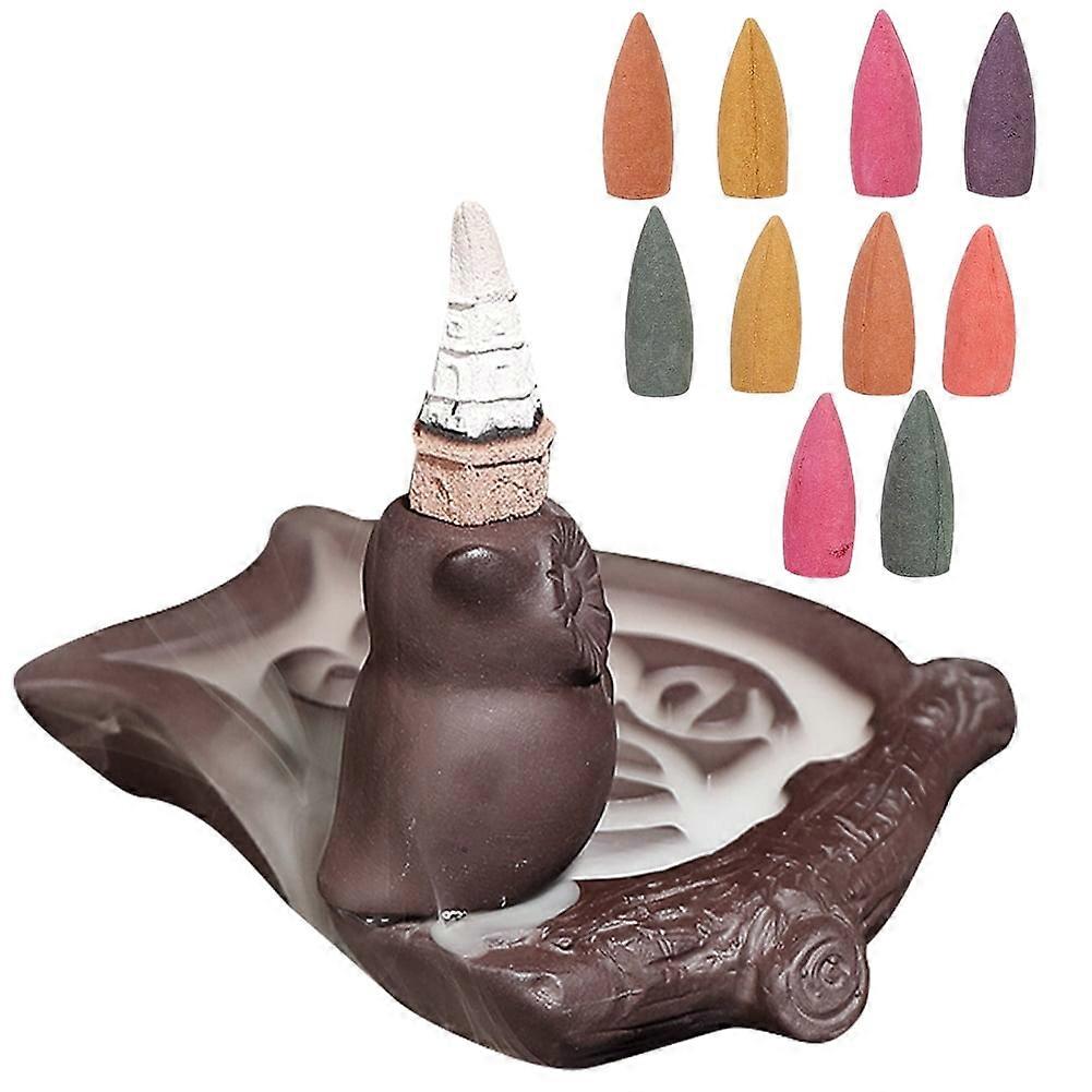 VIFERR Unique Innovative Owl Shape Backflow Ceramic Incense Burner Cone Holder Home Office Decoration