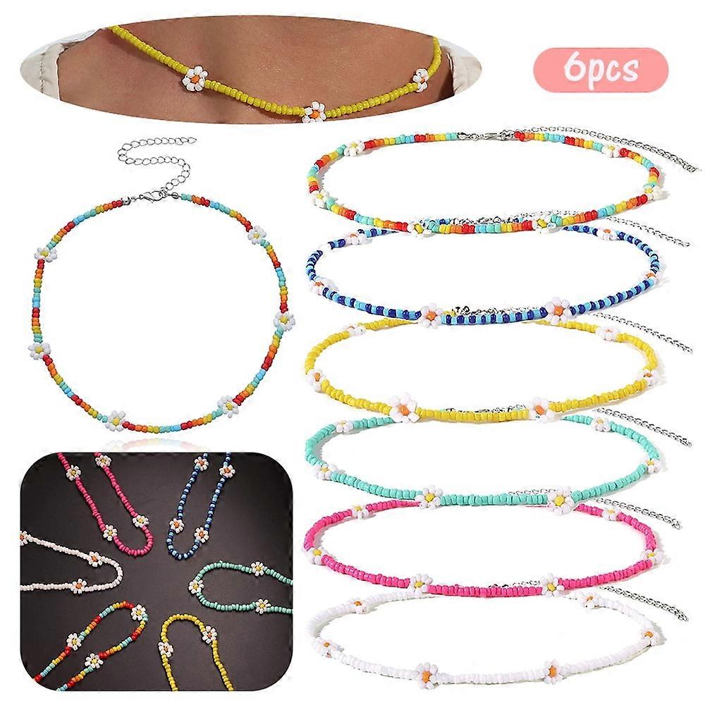 EIMELI 6 PCS Cute Girls's Beaded Choker Necklaces Vsco Boho Handmade Flower Necklace Adorable Necklace For Teen Girls And Women