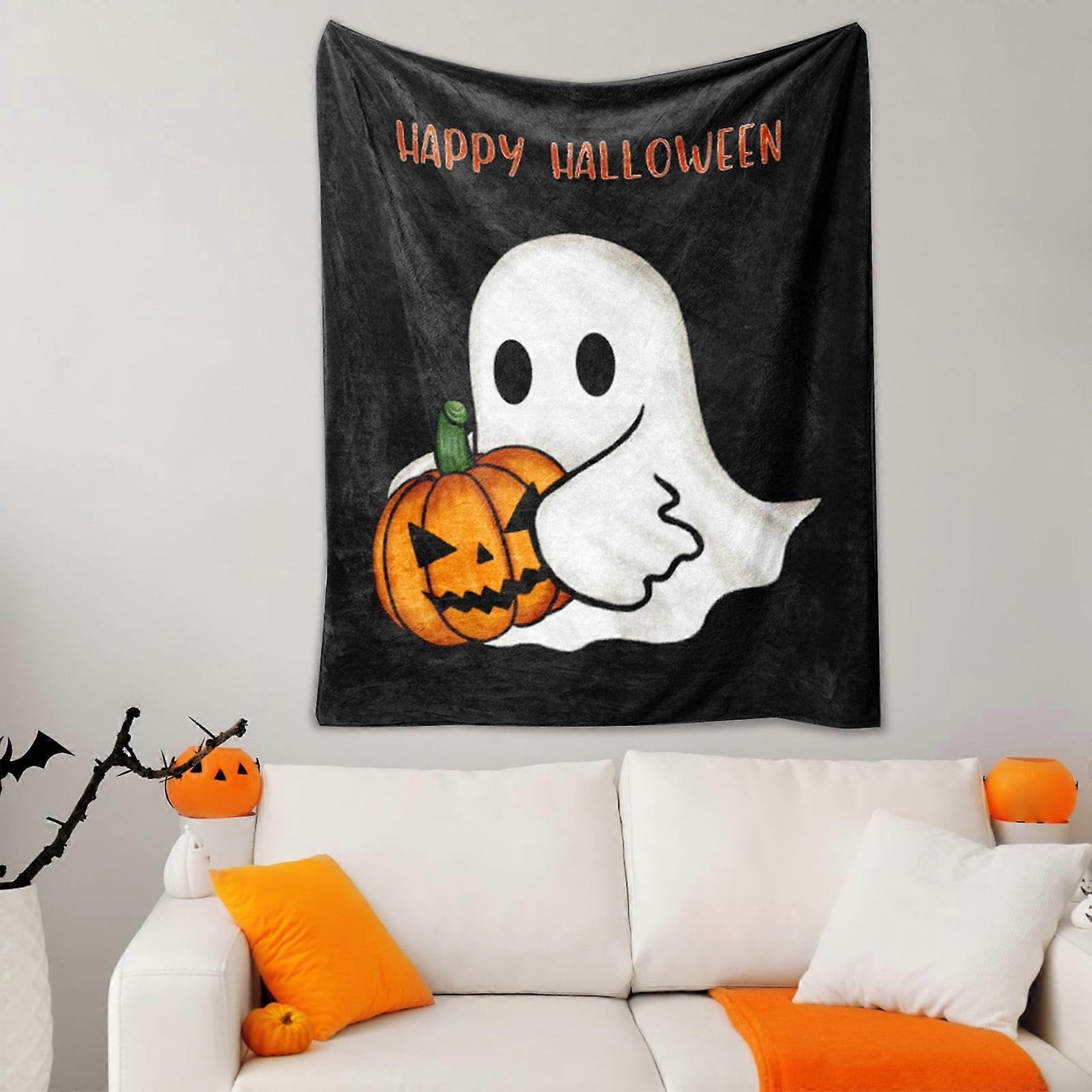 Donemore New Flannel Halloween Cute White Ghost Throw Blanket Cute Blanket Soft Cozy Fluffy Halloween Blanket for Living Room Sofa Bed
