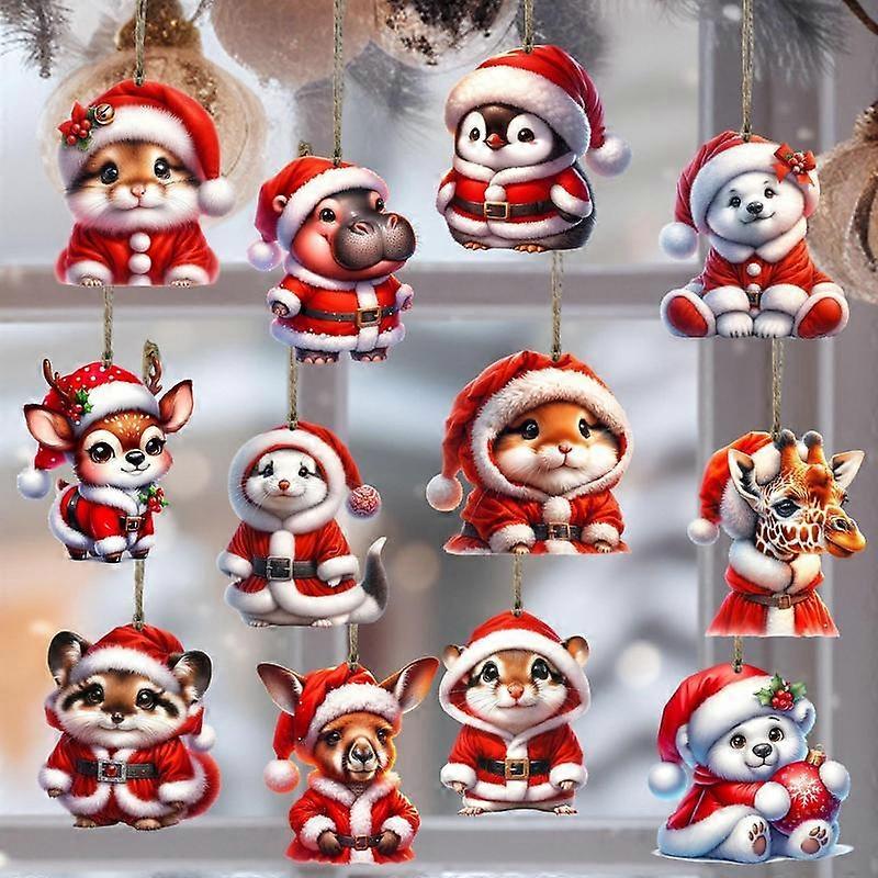 Wooden Christmas Tree Ornament, 24pcs/set Cute Animal Design Hanging Ornament with Rope, Hanging Decoration for Home Party Festival