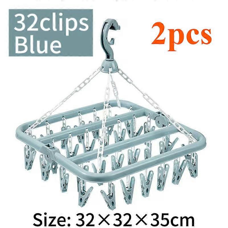 1/2pcs Multifunctional 32 Clips Folding Clothes Dryer Hanger Clothes Socks Drying Rack Home Gadgets Clothe Peg with Plastic Clip