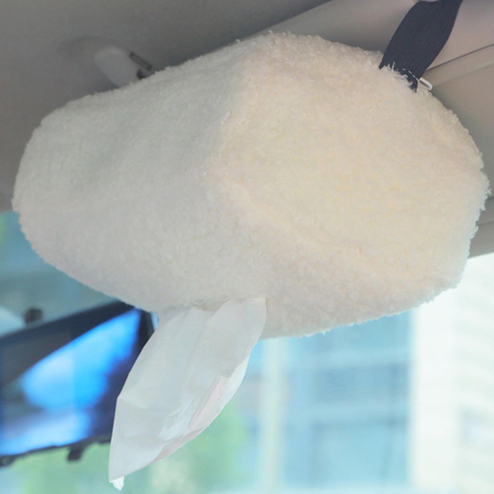 Txmfgh Comfortable Lamb Fleece Car Seat Back Visor Tissue Box - Universal Fit, Large Capacity, Elegant Leather Design for In-Car Use