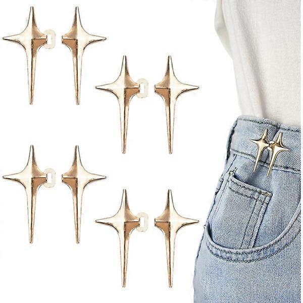 Pairs Jeans Buttons, Four-Pointed Star Design to Tighten the Waist, Adjustable and Sew-Free Metal Pants Waist Adjusters Gold