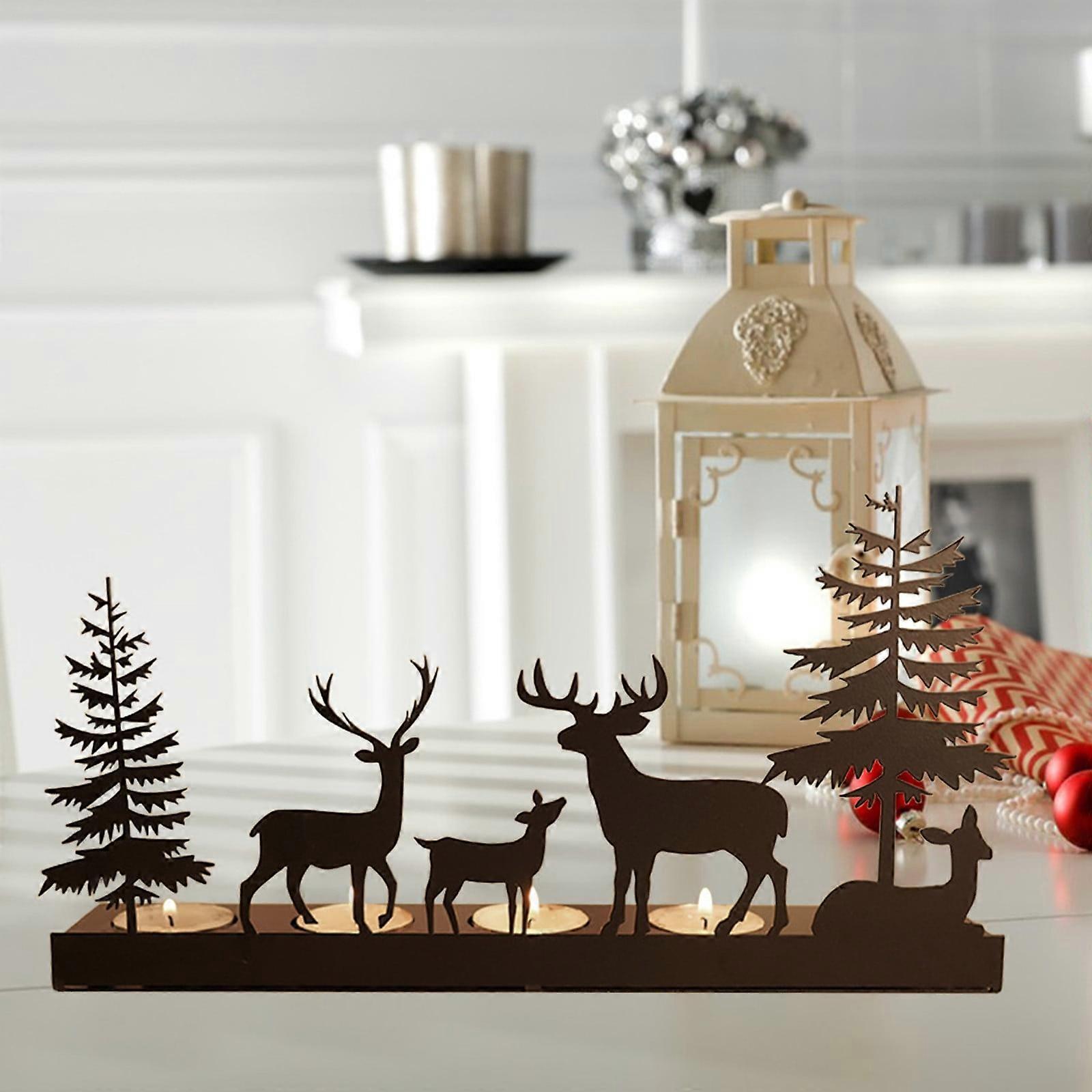 Elegant Metal Iron Christmas Deer & Tree Candlestick, Compatible with Tabletop Decor, Illuminating Ambiance for Festive Home, Black