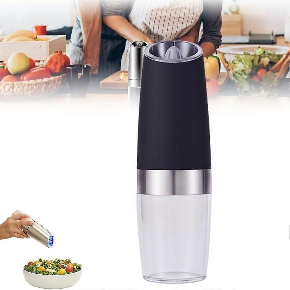 Gravity Battery Salt & Pepper Grinder Set with Light, Rechargeable Electric Mills, Stainless Steel, Adjustable, Auto Induction, Black