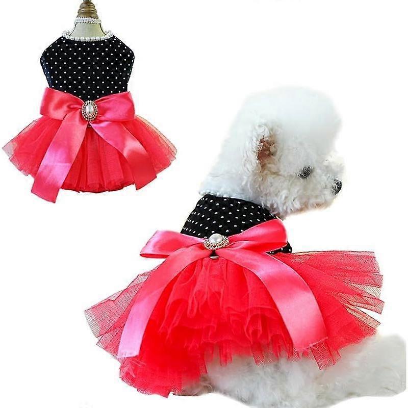 Fancy Dog Dresses with Leash Ring, Embroidered Dog Wedding Dress, Bow Puppy Clothes for Small pet Girl Multi-Layer Lace Tutu Cat Outfit for