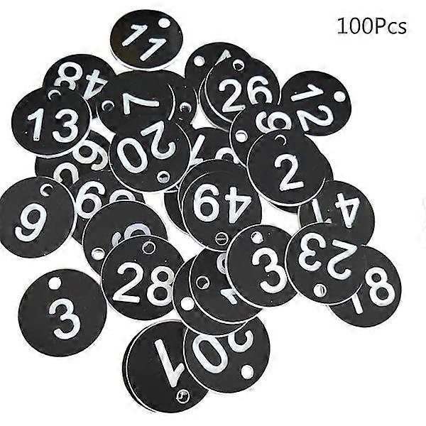 100 pcs Plastic ID Number Tags 1-100 Engraved Number ID Tag Colored for Keychain SVC Black