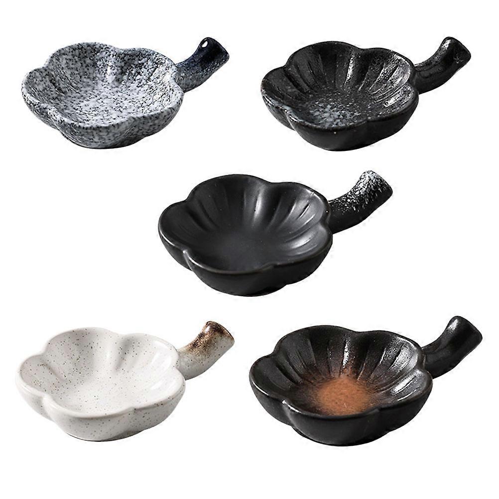 Ceramic Seasoning Dish with Handle for Eating Use 5Pcs Assorted Color Small Bowls