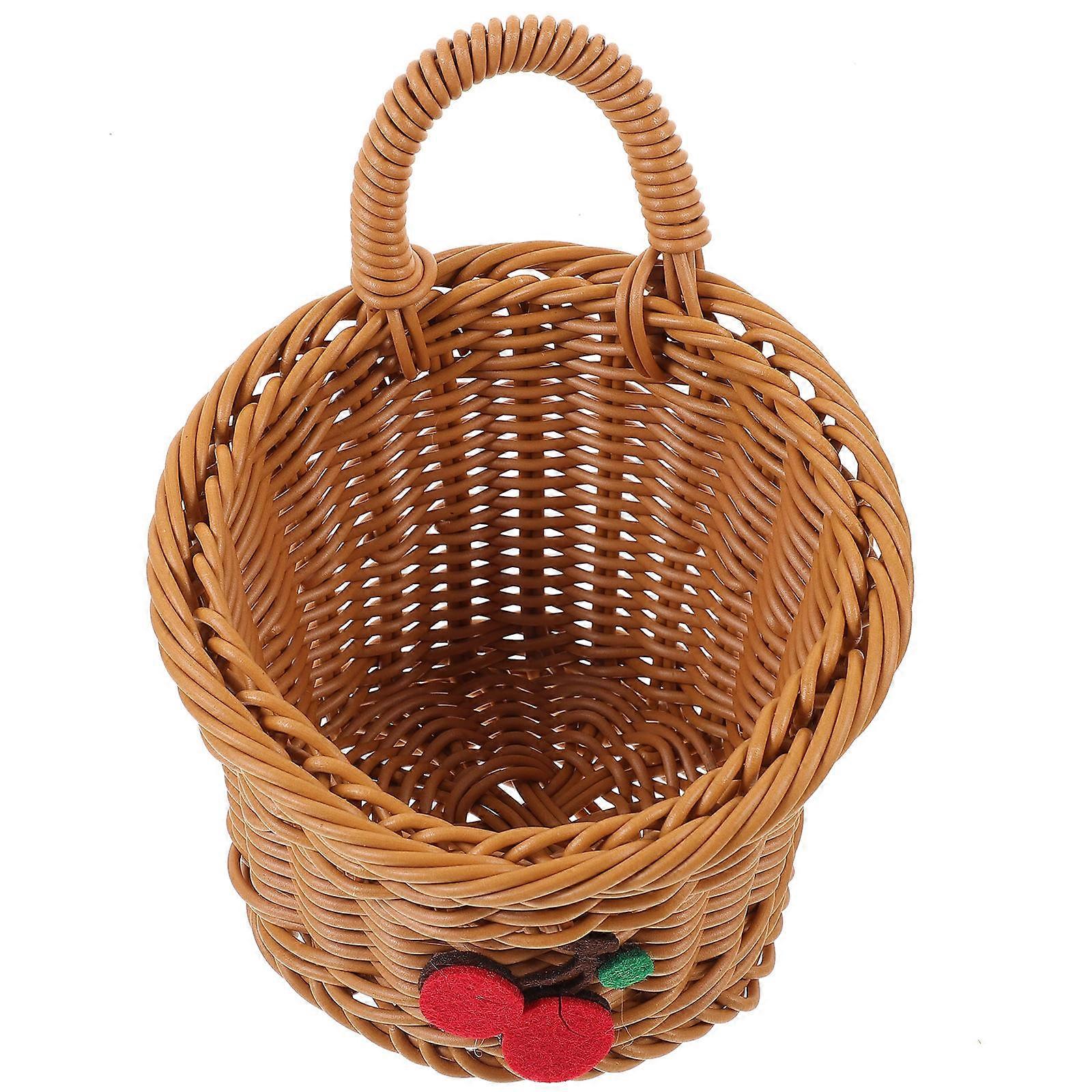 Hanging Wall Basket Produce Storage Organizer Farmhouse Style Cherry Pattern 14X13X16CM Fruit and Vegetable Storage 1 Piece