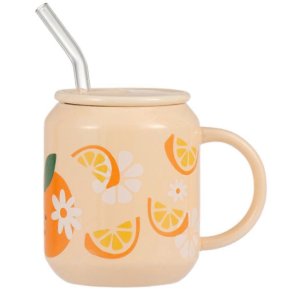 Cylindrical Ceramic Coffee Mug Set Of 3 Adorable Fruit Water Cup With Lid And Straw Suitable For Home And Restaurant Use In Elegant Style