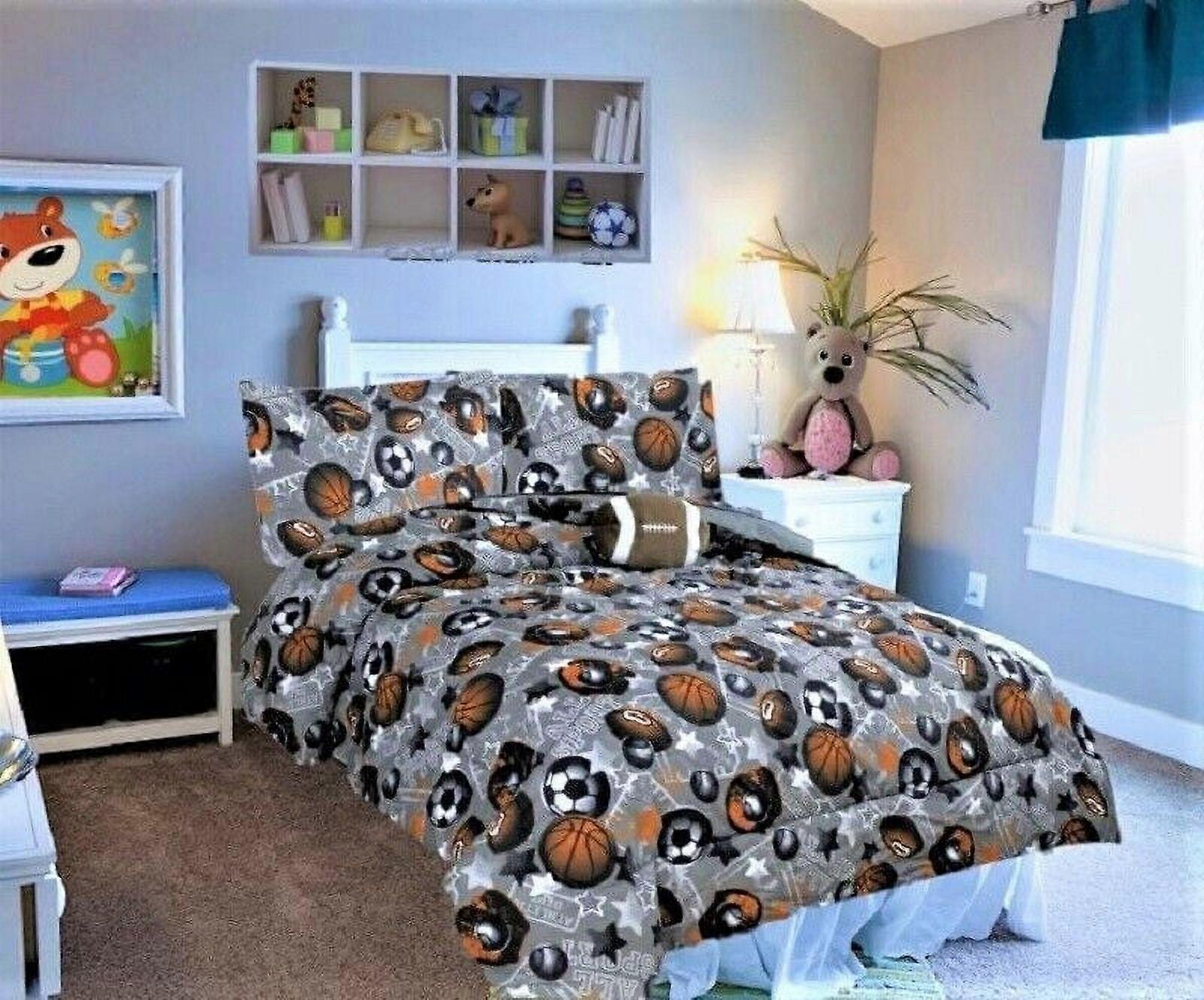 SAMIMPORT-2011 6-Pieces Silver Football and Basketball Comforter Bed-in-a-Bag Sets, Twin